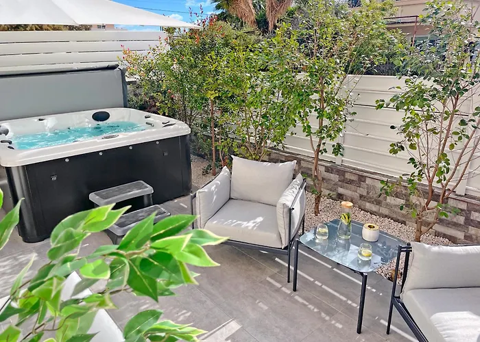 Il The Encino - Luxury Seaside Suite Larnacainclude una terrazza e si trova abbastanza vicino alla Kastella Beach. L'alloggio vanta una jacuzzi che offrono un'esperienza più tranquilla.